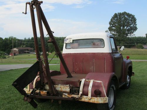 This is a real tow truck .. I purchased this from the wife of a 74 year old gentleman that just went to nursing home .. Boom is made out of drive shafts an pinned with lug wrenches .. IT WAS MADE LIKE THIS , SO THE BOOM COULD BE REMOVED AN THEN USED TO MOVE MOBILE HOMES .. runs an drives great .. new tires all the way around ..Has a factor rebuilt engine . Blurie picture shows factor rebuilt engine tag .. I believe the engine is a 360 or 390.. Brakes or a little sticky since it has been sitting .. I do have new wheel clyinders kits ..