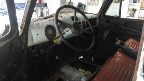 This is a project. cab fenders and hood are in good shape it has some rust in lower corners of cab, the floor is gone , frame is solid it is sitting all the original suspension i have two different seats that go with it a bench and a set of buckets i do not have the original seat there is no glass in it but all the mechanical parts are there i have the bed but i am missing 1 fender and tail gate the motor and trans is from a 2000 gmc truck i bought the complete truck and pulled the motor and trans truck ran real good i had the trans rebuilt and i have the custom wire harness and ecm if you have any questions please call me THANKS terry 734 502 1150
