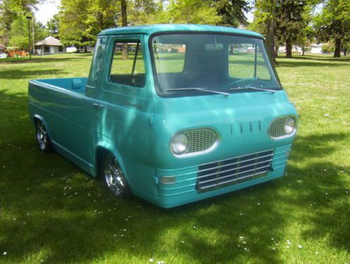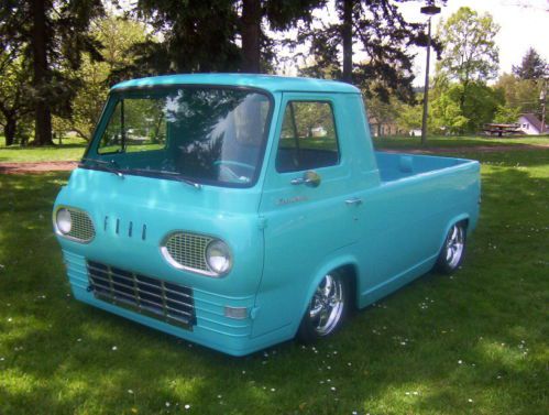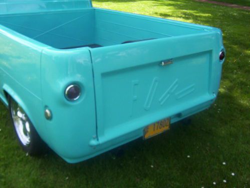 WOW !! The LowLiner is up for sale ! After 6 years of fabrication I am offering my 1963 Econoline pickup for sale on Ebay. It is fully restored. The truck is Painted in basecoat/clearcoat ,tropical turqoise blue. It has had many mild custom tricks performed on it . The number one thing is the INTERNET LEGEND " Tumble Down Tailgate" with Ranger latch. It took 37 hours to fabricate this notorious Gate. The truck also has a 2 1/2 inch lower front pan with beedrolled accent line, 4 inch side skirting welded into the stock lower side rail so it appears stock Plus a 1 1/2"rear apron extension. On the box rail the stake pockets have been removed and inner box sides have been scheared,beedrolled and installed, also new steel tubs have been installed with a new floor. The whole thing was then covered in charcoal marine carpet trimmed in dark grey. The floor carpet and pad is removable if you should want to haul something in the box. Inside the cab the interior walls and roof were covered in beedrolled steel panels and the painted basecoat/clearcoat along with the doors and dash. heavy metalflake scallops and white stripping were then overlayed onto the dash and insturment panel. The steering wheel was nicely restored, the seats reupholstered, plus full carpet and pad were layed down. The doors and windows have all new seals,wiskers and anti rattle kits. To top the interior off, I have fabricated a shifting pod for the mustang C4 shifter and cable. For those of you who don't know these econoline pickups, They were BARE BONES units. They were all small 6 cyl engined trucks with 3 speed manual transmissions. They had little or no interior panels or carpet. This truck didn't even have a glove box door or a passenger side sunvisor. There were no inner box sides or rear bumpers. You got very little for very little money,that was the idea. The new powertrain is strong,fresh, and modern. It features a high performance 302 V8 Ford with new Demon carb,Edelbrock intake, and a Crane cam, all the hp parts were selected to give good reliable (Street ) performance . It is a strong reliable and trouble free ride ! I can drive it anywhere and I actually have a few thousand miles on the truck. The rest of the drive train includes a flipped and dropped front axle, a flipped and narrowed 9 "inch ford rearend and C'd rear frame rails. the safety issues have been addressed with a complete brake job, new shocks, new driveshaft Plus the new special edition American racing wheels 16"front and 17" rear Torque thrust wheels, shod in high end BF GoodRich tires. This is indeed a one of a kind truck. It has never been wrecked, has no rust history and was garaged the majority of it's life. I am the third owner of the truck. All the work is done in (STEEL) , there is no plastic,or fiberglass involved in the modification. The complete artistic rendering was done to produce a Long, Low and smooth flowing design that looks like it's factory made. I think I have reached my goal, and now it's for sale to you. Buy it now for $27,500 Thanks everyone for the interest, and good luck to all bidders. Brian