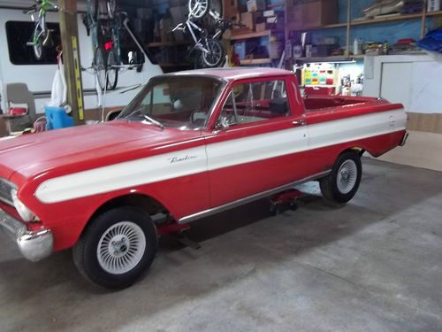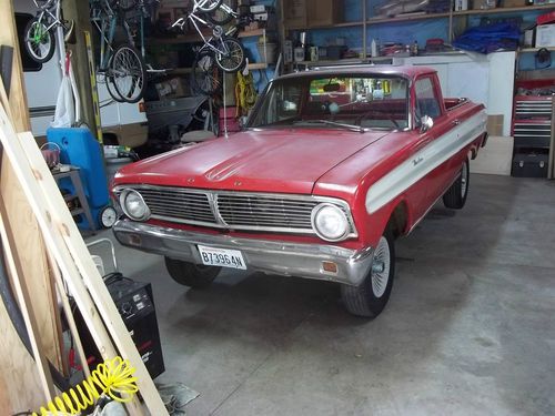 up for auction is a 1965 ford ranchero,this is my neighbors car so any questions will be answered as soon as possible.this is a project and needs restoration.engine was rebuilt but has a low end knock,3 speed on the column.will be a cool ride when restored.