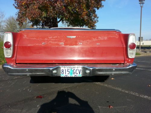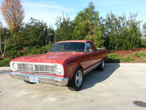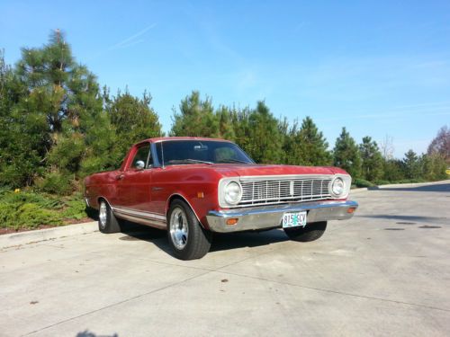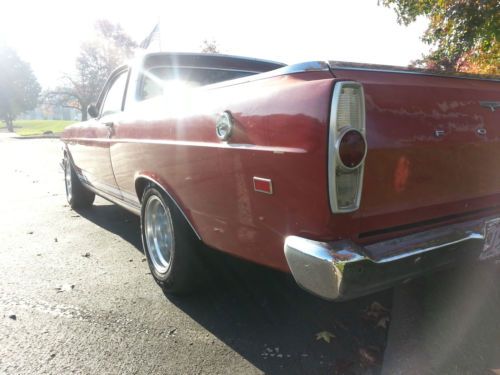 I recently took this vehicle in trade I was informed by the previous owner that several thousands of dollars was spent on the drive train it has a very healthy 302 cubic inch motor with a nice sounding flow master exhaust system which accents the rump-p-dee rump sound of the oversized camshaft. The automatic transmission has a mild shift kit which is a floor shift B&M which I have a problem getting it into park, most likely a minor adjustment. Although the car is in need of paint work the body on this vehicle is incredible it is very straight and solid with very little rust mainly the rear floor pans which are not real bad but in need of work. The chrome and stainless parts are all in fair condition and the new Eagle Alloy 10" rear wheels and 8" fronts are a nice touch.Overall this is a big potential 66 Ford Ranchero in need of some restoration to be of high standards any questions feel free to contact me by email or 541-683-4949 thanks