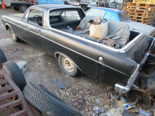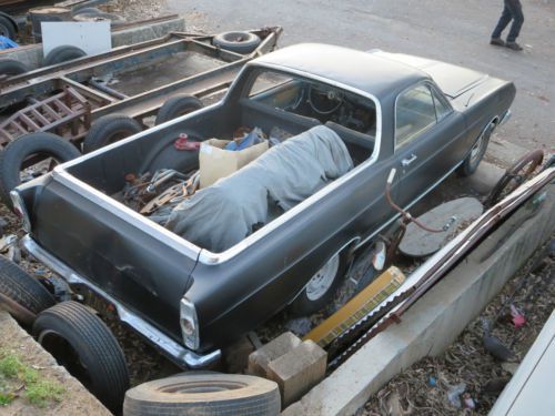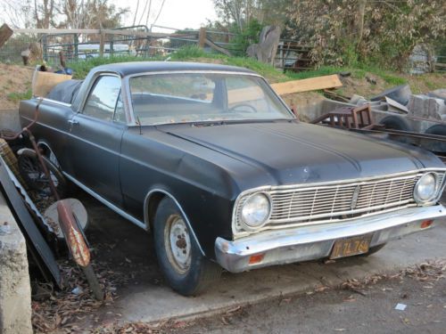I am selling this 66 Ranchero for a friend. It came to me for a 302/auto swap but something came up and the owner now needs to sell it. the car currently has a 200 straight six with a column shift three speed transmission. The motor and transmission did run and drive but then someone took the pedals out. It is missing the clutch pedal now. Other than the pedal the car is driveable. Included in the auction is a 5.0 liter engine out of a newer mustang and a c6 auto trans. Motor has the roller cam and one piece rear main seal. It just needs an intake, carburetor and a few small parts to run. Everything to swap the v8 into the car is included which includes the motor mounts, v8 gas pedal, steering column for auto, brake pedal for auto. tranny linkage, headers. The body is a decent shape with a few dings here and there but no rust. All the glass is there and door glass rolls up and down nicely. The rear window is not installed. Has California black and yellow plates. If you have any questions please email me.