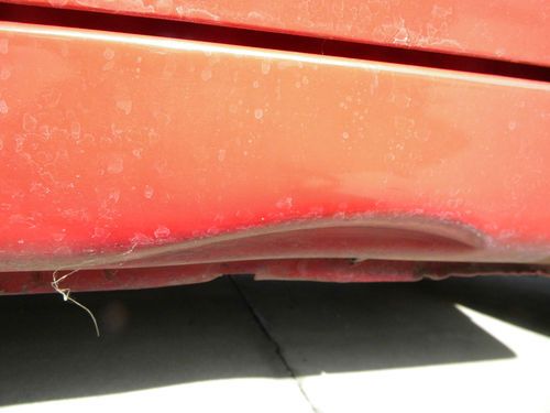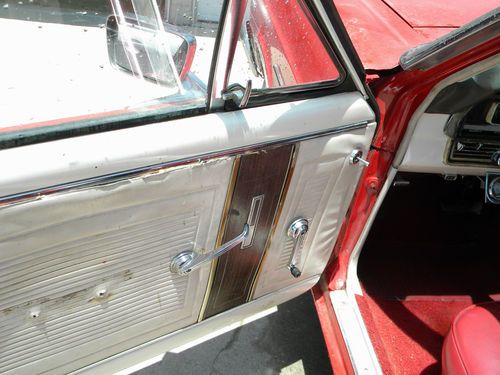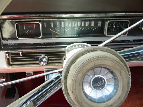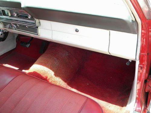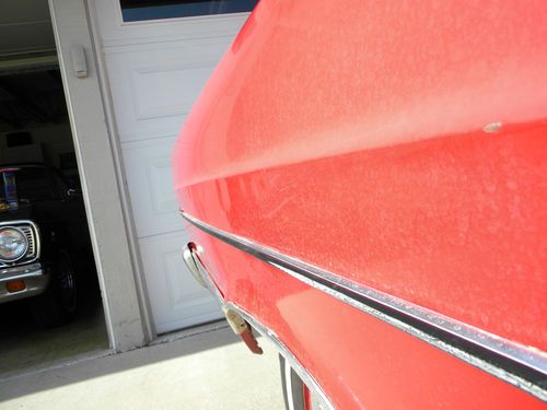 The body looks original with only three small problems. The only rust is a strip on the tailgate that holds tailgate panel on at the bottom. The strip is about 1 inch wide and the length of the tailgate. It is screwed on and should be replaced. There is a dent on the right rocker panel. see picture, and a repair done on the right rear over the wheel well that could have been done better. I took a picture but I don't think it shows in the picture. The car was repainted in Feburary 1993 as receipts show. There are a few chips and a spot where the paint has come off, it is about roughly 2 x 5 inches. The floor pants show NO signs of rust as well as the body. The interior is missing one arm rest and could use new door panels and seat covers.