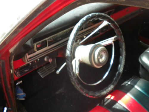 I am selling a straight and rust free 1967 Ford ranchero. The car has a 289 cubic inch engine, automatic, power steering and brakes. Factory AC that is all there under the hood and in the dash but is not hooked up. The engine starts right away and does not smoke or knock. The transmission shifts smoothly and neither it nor the engine leak. The interior has custom seats but the original seats come with the car. The front end is tight and the brakes work fine. A set of front disc brakes also come with the car for the new owner to install. The paint is in very good condition with no rust or paint bubbles. The wheels are not factory original and the tires have good tread but I do not think they would be suitable for a long road trip. Also three Mustang wheels come with the car. No disappointments here.