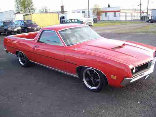 Selling this for a friend, So I dont have a lot of info. He is just thinning out his collection. This is a 1971 Ford Ranchero, Has the 351 Cleveland, with a nice bumpity cam, Aluminum Intake, 4 Barrell, Newer Dual exhaust, Automatic trans, Power Steering and Power Brakes, This Ranchero was owned by a mechanic, Was his daily driver, Has been lowered a few inches front and rear, Drives real Nice. Brakes are good, Crawled around underneith the best I could, Do not see any rust issues. Nice straight body, Paint looks real good, Has a nice shine. Appears to be the original color, Does have some small scratches, paint chips, dont see any rust issues on the body, Nice and Straight ! Not a show car but would not take much to be Show ready.Shows 47,000 miles Im sure its proably 147,000