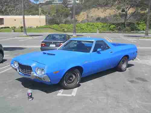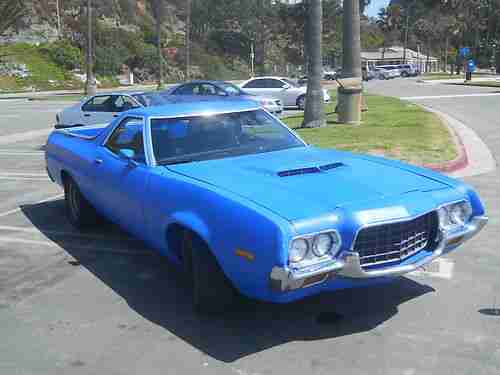 It is time to sell my Ranchero. I bought a car, and I don't need 2 vehicles. It is a great truck, it has the cool 72 torino nose. I have owned it for 20 years. I have fixed a bunch of little stuff on it, which makes it good deal for somebody who likes big block Ranchero's. First I installed a 750 cold cranking amp battery. Standard tuneup , pertronic electric ignition, runs great. It's a Ford and it does not leak oil. Heavy duty C6 transmission. New parts, water pump, starter, alternator, heater core, heater switch and heater motor. Fixing the heater was a lot of fun. Brakes are good, replaced a defective rotor, a leaking axle seal, replaced the front part of the dual exhaust, and topped off the rear end. New bushings on the front struts and new shocks. Frame mounted trailer hitch. I cleaned up the interior. New seat upholstery, carpet, good condition padded dash, cleaned, detailed and reinstalled all the interior parts. A forty hour job!!! New windshield. I have bought a 200 dollar set of chrome powdered hood hinges. The hood does not sag. As you can see, I have done a ton of work to my Ranchero. I have spent over 2000 dollars doing preventive maintenance. It is a solid daily driver, looks fine with the satin blue finish, or you can take it to to the next level.