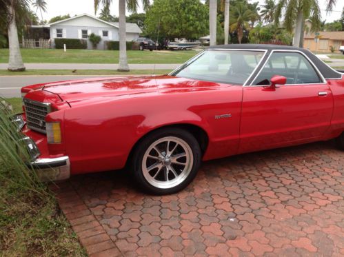 1979 FORD RANCHERO...GOOD CONDITION...SOLID CALIFORNIA CAR...RECENT PAINT JOB, 18" WHEELS...PIRELLI TIRES...NEW ALTERNATOR AND VOLT REGULATOR...NEW FRONT BRAKES AND ROTORS...NEW POLY URETHANE SUSPENSION BUSHINGS FRONT AND REAR...HAS CRUISE CONTROL BUT NEEDS A STEERING WHEEL WITH THE CONTROLS...