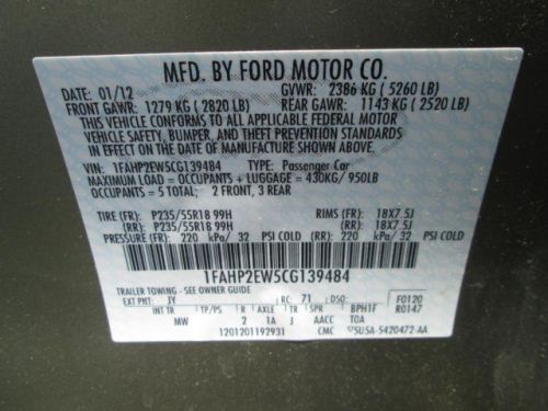 VIN (Vehicle Identification Number): 1FAHP2EW5CG139484