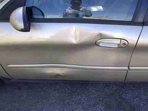 2000 Ford Taurus SE Leather Steering Wheel Trim, Plastic/rubber shift knob trim Keyfob remote trunk release Front reading lights Premium cloth seat upholstery Front split-bench Rear bench Machined aluminum rims Power remote driver mirror adjustment Heated driver mirror Heated passenger mirror Remote digital keypad power door locks Power windows Cruise controls on steering wheel Cruise control External temperature display Tachometer Auxilliary transmission cooler 4-wheel ABS Brakes Front Ventilated disc brakes Passenger airbag Anti-theft alarm system, dented driver's door, dented driver's door, could be fixed or replace, car is super clean in and out and runs on the highway everyday, its a super gas saver, you'll love it.