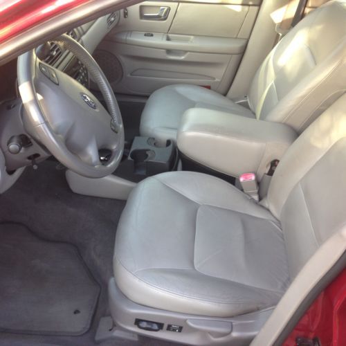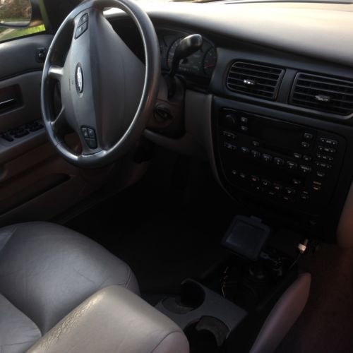 Vehicle Description & Options Installed: 3.0L V-6, 4 speed Automatic Transmission W/overdrive, 4 Wheel Disc Brakes, Original factory Matador Metallic Paint, light gray leather interior, Roof rack system, Driver side Power 8-way adjustable Seats with Lumbar back support, Pedal adjustment switch (this feature moves the brake & gas pedal away from you or closer to you, Automatic Temperature Air Conditioner & Heater, Auxiliary 12v Outlets, Center Console folds-up to become a seat, Cruise Control, Cup Holder front & rear, Dual Front Airbags (SRS), Rear 3rd Seat & rear locking storage compartment, Outside temperature gauge, Keyless key pad Illuminated Entry System with active code, Illuminated Visor Mirror, Intermittent Wipers, Internal Trunk Release, Factory Security/Keyless Entry System, Leather-Wrapped Steering Wheel, Map Lights, Power antenna, Power Brakes, Power Door Locks with child safe lock, Power Mirrors with exterior security light underneath them, Power Steering, Power Windows, Premium 16" Alloy Wheels with new tires, Spare tire & jack assembly (ready if needed), Front & Rear Window Defogger, Reclining back Seats, Tilt Steering Wheel, Power antenna, *Premium 6 speaker Radio system with factory rear CD Changer,*Portable 3.5" GPS Navigation system, including all the original owner's manual, 2 original Ford Taurus security/entry remotes and the original 2 keys. Also a brand new unopened pair of light gray front seat covers.