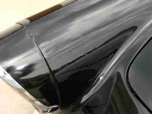 Chrome is good, not #1 show condition. Bumpers shiny and nice with a little cracking at the bumper bolts. Very minor crazing on some trim pieces. Very old repaint. There are a few scratches and chips in places - have been touched up. Most noticeable is a gouge in the spare tire surround and chip in the hood scoop. Also some crazing in the paint, primarily in the front (see picture).