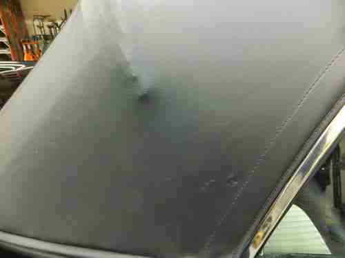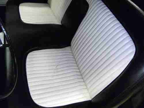 Interior is clean. Door panels are in very nice condition - not cracked or stained. Seats are in nice condition - not cracked or split. (According to data plate, car originally had a red/white interior.) Carpet good. Dash and gauges clear. Speedometer is NOT accurate. Miles showing is 65,246. Steering wheel good, not cracked. Interior chrome is nice, not show condition. Manual convertible top. Top was new 10 years ago and still looks good - one little 'pinch' on passenger side, but not a hole. Windshield wipers are not working - have a Castco converter kit that goes with the car.