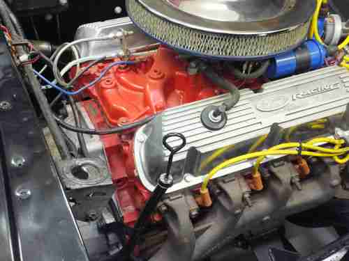 Driveability improvements are a 1970 Ford 302 V-8 engine with a 1994 Ford Automatic Overdrive Transmission. Heavy duty aluminum radiator with electric fan. Modern GM Saginaw 605 power steering box and pump. 1966 Ford Mustang front disc brakes. Engine compartment very clean, painted and detailed. Runs excellent. LED tail lights and front turn signals. Heater has been removed.