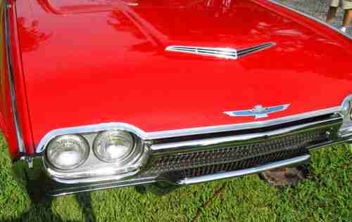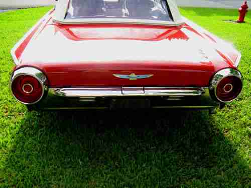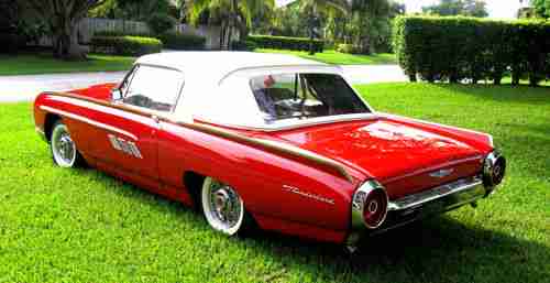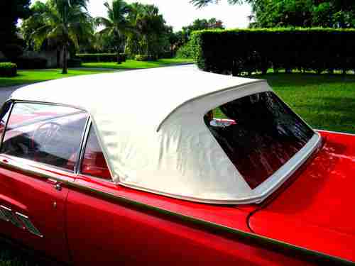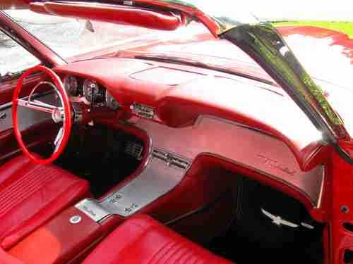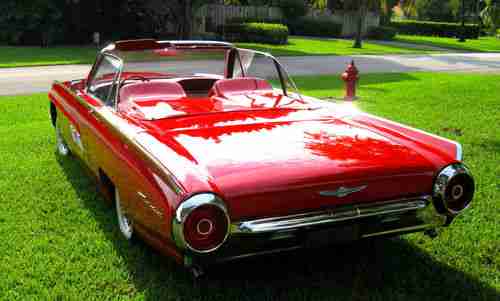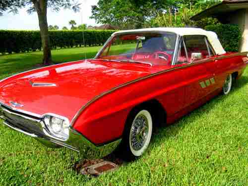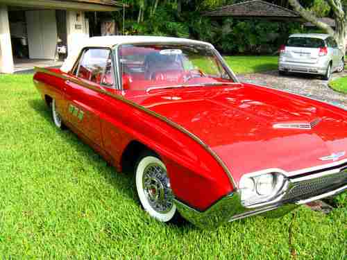 1963 Ford Thunderbird Convertible, Red with red leather interior, Sport Roadster Package, One owner for the past 12 years, equipped with Wire Wheels, Power steering, PB, PW, Power Seat, Auto Transmission, car has been fully restored, new tires, new chrome, new top, new correct carpets, new Leather Interior, Rebuilt engine, Transmission, Brakes, Paint and Exaust System, Actual miles stated on title showes 78,557 miles, have most receipts, Drives like a dream, Reserve price is reasonable. Info 561-313-8094