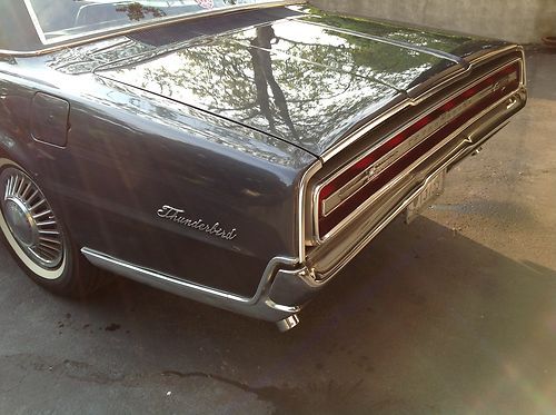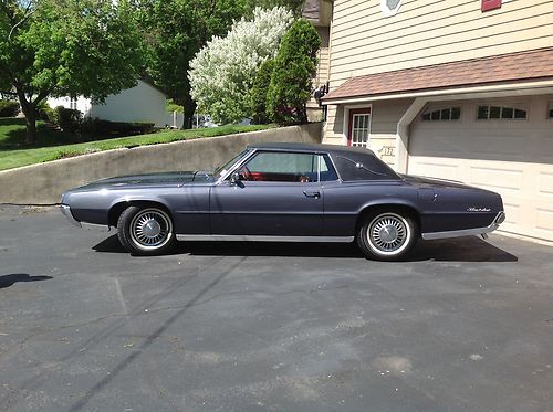 For sale by owner. 1967 Thunderbird, Landau. All original, 31,000 miles, fantastic condition. Mint condition red interior with tilt-away steering wheel. Excellent chrome and body. Absolutely no rust anywhere. Hideaway headlights work perfectly. 390 V8 engine with 4 barrel carburetor. Car runs beautifully and drives straight and smooth. Car is immaculate inside and out.