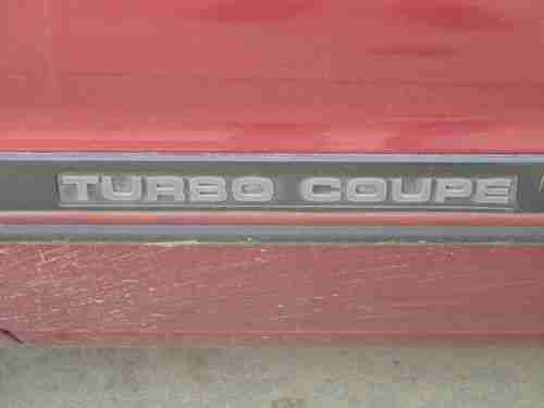 1988 Ford T-Bird Turbo Coupe. Third owner- ALL RECORDS to document original miles of 40,481 as of January 26,2013. This vehicle has been WELL taken care of, all documents since vehicle was purchased including original contract when vehicle was purchased.Alloy wheels and tires in very good condition. Key less entry, great gas mileage