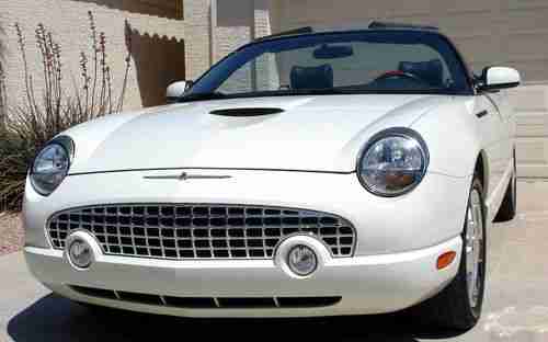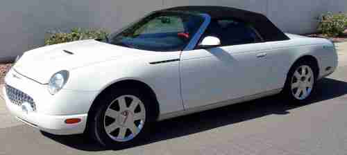 Second owner, Title in hand, this car has never left Arizona. This vehicle is one of the 4,100 White 2002 Ford Thunderbirds manufactured. It has a 3.9L V8 EFI DOHC engine and an automatic transmission. With: New Tires, ABS, Keyless Entry, Rear Defrost, Driver Air Bag, Passenger Air Bag On/off Switch, Center storage console w/leather-wrapped armrest, 6-way Power Driver seat w/manual lumbar adjustment, Bucket seats w/adjustable head restraints, Power Mirrors, Decorative hood scoop, 18 gallon fuel tank w/tethered cap, Power 4-Wheel Ventilated, Anti-lock Brakes, Disc Brakes, Variable-assist Power steering, Front/Rear Stabilizer Bar, HD 110 amp alternator, Windshield-mounted antenna, Power door locks w/auto lock, Passenger-side airbag deactivation switch, 3-Point Active Restraint Safety Belts, Intermittent Wipers, Automatic Headlights, A/T, Driver Vanity Mirror, Passenger Vanity Mirror, Convertible Soft Top, Rear Defroster, Power Driver's Seat, Clock, Trip Odometer, Cruise Control, , Power Windows, Dual Zone Climate, Traction Control, Console, Remote Trunk Release, Leather Steering Wheel, Reading Lights, Steering Wheel Audio Controls, Adjustable Steering Wheel, AM/FM Radio, CD Player, Climate Control, (2) cup holders, Cigarette Lighter, Deluxe carpeting, Rear Window Defroster, SecuriLock passive anti-theft system, Keyless/illuminated entry system, Tachometer, trip odometer, Variable Speed Intermittent Wipers, Floor Mats, Security System, Multi-Zone A/C, In-trunk safety release, Luggage compartment light. Call, Text or Email. Principles Only!