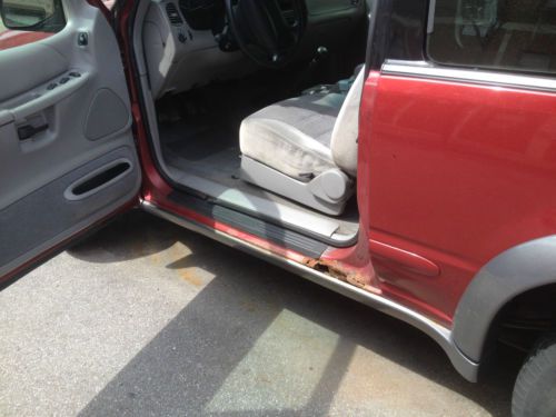 Clean 2 owner title 2000 Ford Explorer Sport, 234,000+ miles which needs (I'm told) a new clutch and transmission. Listed as "mechanics special" as the rest of the truck from a running perspective is mechanically sound. Engine, belts, diffs, suspension, exhaust, brakes (except emergency, more on that below) all are in working order with no leaks/drips. Tires should be replaced this year and body has normal wear and tear for being used both on and off road and has rust on the rear bumper and body on drivers side door entry which is typical for this model. Interior is fair for its age but carpets and passenger seat could use some cleaning but no rips, tears or holes.