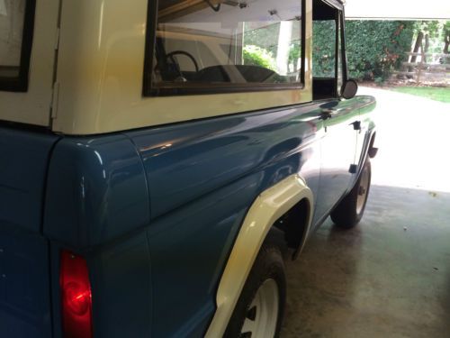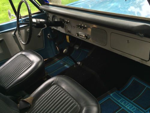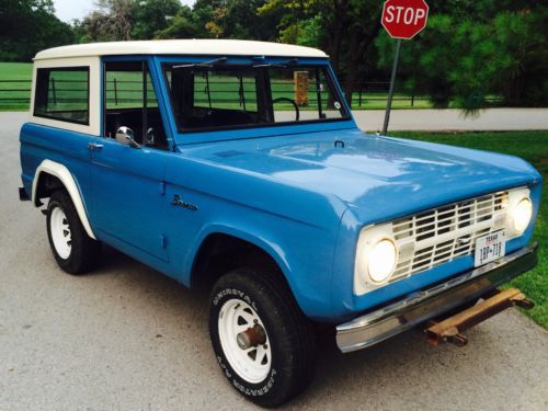 This vehicle has the original 170cc inline 6. It still runs strong, does not leak oil nor does it smoke. The tranny, 3 on the tree, shifts smooth and does not slip. It will run 70 mph down the highway all day long. All the gauges work! If you want an extremely clean bronco, stop reading and bid. I have taken pics of the age issues, but to enjoy this vehicle you only need to buy and drive it. The issues can be addressed for very little $ and time invested. I priced out all parts needed to make this baby perfect and it was under $1000. Including 3 new oem seat skins. You won't find a better deal! We can do the work for you, if you want after you buy it. I put the seats from my 74 in her so i could drive it around without damaging the original silver 1966 seats. Will ship the vehicle with the originals. If you want my other ones as well, we can work something out. I can answer any questions that you may have regarding the vehicle, but the pictures speak for themselves. If you would like to see what we normally do to vehicles, please check us out on FB @ Iconic Motor Company---- Like our page. This Bronco is Amazing!!! This vehicle is listed for sale locally and I reserve the right to sell it immediately to a qualified buyer and end this auction. Thanks and Happy Bidding On Jul-23-14 at 18:56:05 PDT, seller added the following information: The picture of the wheel well shows the original undercoating that is still present all though flaking. It was put on by the New Jersey dealer as an optional undercoating. This coating is present throughout the undercarriage and when pulled off in pieces you expose the original burnt orange primer or marlin blue paint. This is the main thing I believe kept the rust off this vehicle. That and it was stored in San Angelo tx since 1974. It was purchased in Jersey and the owner then moved to TX to pursue his racing career. |