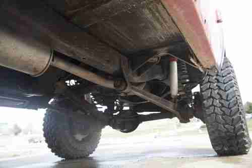 - Customer fabricated rear bumper with receiver, removable jack stand, mounted gas tank and spare wheel.