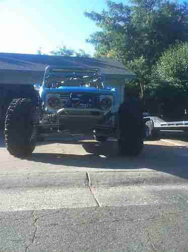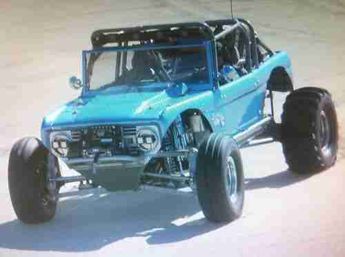 Custom 1968 Bronco 440 stroker with super charger LS7 Casner Racing powerglide Atlas transfer case,Chassi is built out of chromo tubing and plate. 30 series IFS,Proam cv's,RCV performance 300 M axles,heat treated Aarms, Currie F9 center sections front and rear with lockers. The rear 300M axles Tru Mega HI9 3rd member,CNC 6 piston calipers, Fox 3.0 bypass and 2.5 coilover on each corner with Fox bumps. Howe.R&P steering , Fluidyne oil and tranny coolers with electric fans. Race radio and intercom and GPS, stereo,amp ,tower speakers. This is a 3 seater car with Beard seats and Crow harness. Warn winch with air compressor and synthetic rope. It also comes with five 42 in. Iroks mounted on Raceline beadlocks and four sandtires mounted on Raceline beadlocks. The car has only 30 hrs. on everything and is Very fast and fun to drive. This is a multi purpose car you can play in the Sand,Race in the Dezert,rRock crawling,ETC....... It is also licensed and registered. There is tons of hours in attention to detail and is a one off car.Way to much to list. Please only bid if you are serious and want a one of a kine Bronco. Thanks for looking. Please call if you are interested or need more info 916-765-3669