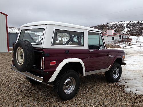 1970 Bronco Sport, 302 V-8,, Edelbrock intake and carb, Hurst 3 speed, Mallory ignition, headers, electric fuel pump, 4:86 gears, power steering, Goodrich 31-10:50-15 tires, 2" lift, 12 gal Aux tank and 23 gal Main tank, new springs and bushings, new shocks, hard top and bikini top. No rust - engine, trans, trans case, differentials all gone thru. More info and additional pictures plz call 970-531-8632