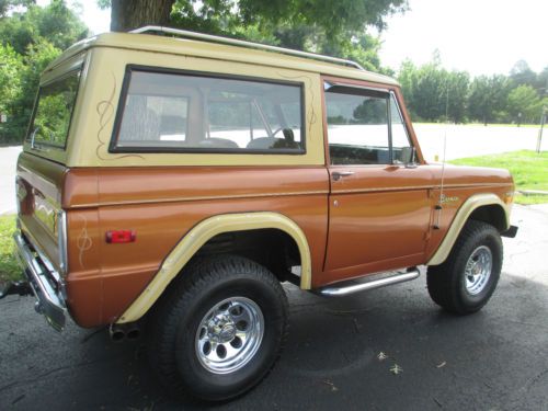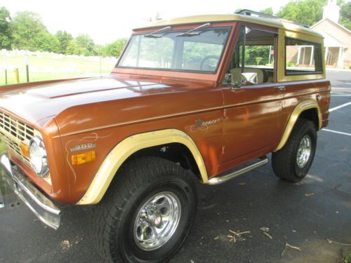 1971 FORD BRONCO WITH HARDTOP OUT OF AN ESTATE BEEN STORED 10 TO 15 YEARS.302 V8 3 SPEED TRANS.RESTORED IN THE EARLY 1980S.NEW TIRES AN WHEELS .CARPET. NEW BRAKES.GAS LINES AN REBUILT CARB.RUNS AN DRIVES GREAT. MINOR RUST BUBBLES ON ONE ROCKER. AN ON INSIDE BOXES UNDER DOOR EASY FIX.PAINT IS OLD BUT GOOD. TRIM IS ALSO GOOD.4X4 AN ALL MACHICALS GOOD.ALWAYS A LOCAL GA TRUCK. HARDTOP IN GOOD CONDITION REAR DOOR WORKS GOOD.BUMPERS AN TRIM ARE GOOD.CALL WITH QUESTIONS OR OFFERS.770 535 7311 SOLD WITH GA REGISTRATION AND BILL OF SALE
