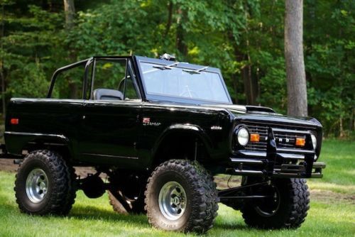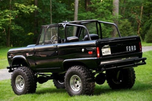 1971 Ford Bronco Full frame off restoration, stunning black exterior and matching black interior, very high attention placed on the build with great paint & body work. The rear quarters were custom made by cutting and sectioning the opening. It retains the "stock, uncut" look " LUBER" but it now allows for much larger tires and wheels choices. Drive train- Ford Bronco 289 - completely rebuilt, tons of new parts 4bbl carb and intake, new air intake filter. 3spd on the column manual transmission - rebuilt. Brakes completely redone with new master cylinder, booster and lines. New power steering system conversion. Rebuilt axles, bearings, etc 2 inch body lift kit 5 inch suspension lift "bulletproof" over the knuckle steering linkage (heim joint ends) Upgraded to polymer "Aero" gas tank with new fuel lines.