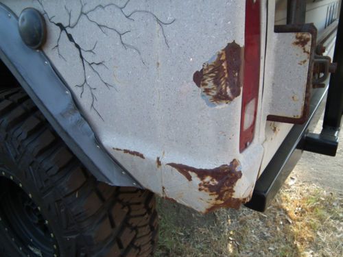 THE GOOD REBUILT 351 CLEVELAND- LOW RPM MOTOR WITH A LOT OF TORQUE AT LOW RPM HOLLY PRO JECTION TWIN STICK TRANSFER MANUAL TRANS- LOW PLUS THREE LONG TRAVEL ARMS UP FRONT 6" LIFT KIT DEEVER SPRINGS IN THE REAR FORD 9" TOW STRAP HIGH STEER SETUP POWER STEERING DETROIT LOCKER IN REAR ARB AIR LOCKER IN FRONT 430 GEARS POWER BRAKES CROSSFLOW RADIATOR CURRIE AXLES NEW 15" METHOD WHEELS NEW 35" GOODYEAR WRANGLER KEVLAR TIRES- LESS THAN 10 MILES ON THE TIRES RAMSEY 9000 WINCH POWDER COATED BUMPERS CB AIR TANK SLIP DRIVESHAFTS NICE WIDE BUCKET SEATS IN THE FRONT VDO GAUGES RUST FREE CA BRONCO THE BAD DAMAGED SHEET METAL AT THE REAR QUATER PANELS ON THE LOWER SECTION- SEE PHOTOS DENT BEHIND DRIVER DOOR ON QUARTER PANEL- SEE PHOTOS COMPRESSOR SWITCH FOR THE FRONT AIR LOCKER NOT WORKING- NEEDS TO BE LOOKED INTO WIRING COULD BE CLEANED UP OR INSTALL A NEWER HARNESS THE FENDER FLARES ARE OLD AND FADED .....THIS BRONCO HAS BEEN A GREAT BRONCO. IT HAS SOME DENTS FROM USE BUT IT IS A VERY SOLID VEHICLE. YOU COULD NOT BUILD IT FOR WHAT I'M ASKING. DON'T MISS OUT ON THIS BRONCO. THE BODY PAINT IS A GRAY ZOLATONE FINISH THAT LOOKS LIKE A ROCK. THE INTERIOR IS RHINO LINED BLACK. I WILL TRY TO LOAD A VIDEO OF THE BRONCO RUNNING AND ADD IT TO THE AD. PLEASE EMAIL TO SET UP A TIME TO VIEW IN PERSON. |