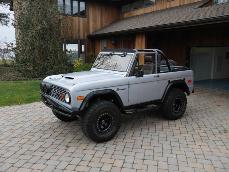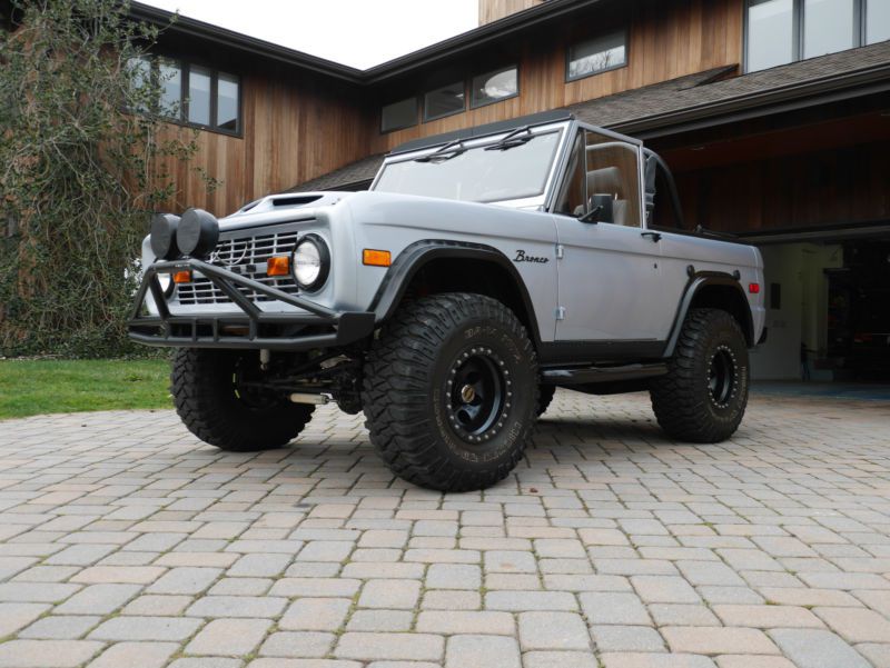 This highly desirable First Generation Bronco has undergone a nut and bolt restoration with many upgrades and was completed in mid 2013. Everything down to the frame has seen attention. The truck receives complements wherever it goes. Beautiful Mercedes Benz “Diamond Silver” paint is complemented by blacked out trim. The front runner bumper, wheels, roll bar, light bezels, etc. have all been powder coated matte black, which accents the silver body nicely.