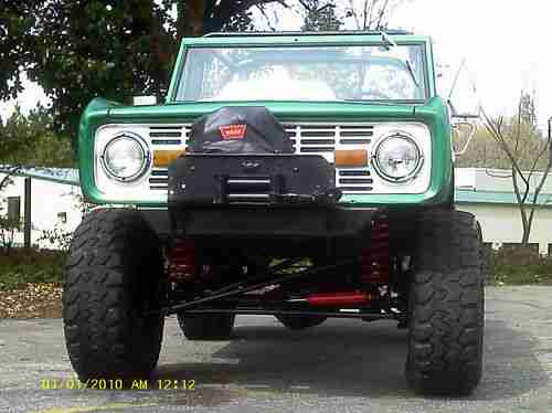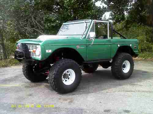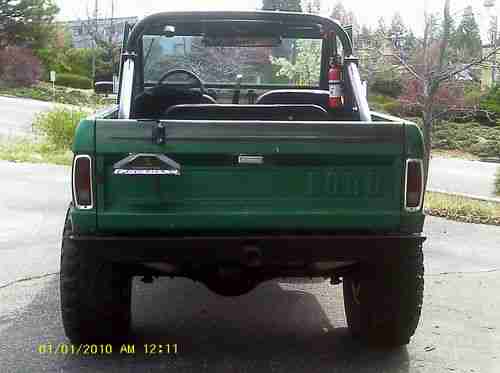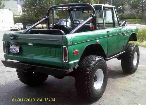 THIS 72 BRONCO IS GOING TO BE THE REASON FOR MY DIVORCE IF I DONT SELL IT,APPARENTLY I SPEND ALL MY TIME WITH IT.OK HERE GOES TRUCK HAS THE FOLLOWING UPGRADES:4-WHEEL POWER DISC BRAKES,POWER STEERING,1 TON REAR END (EATON DROP OUT),3/4 FRONT END( SPICER) WITH WARN LOCKING HUBS,BOTH FRONT & REAR HAVE LOCKERS AND 4;33 GEARS WITH 8 LUG WHEELS. HAS A .MANUAL 4-SPEED FLOORSHIFT WITH A DANA 20 TRANSFER CASE (MARRIED UNIT),TRANNY AND TRANSFER CASE HAVE JUST BEEN OVERHAULED AND NEW BEARING KITS INSTALLED.POWER PLANT IS A FORD CREIGHT ENGINE 351 WINSOR WITH ONLY ABOUT 5K ON IT,HAS A MILD CAM AND PERFORMER INTAKE,HOLLEY 650 4BBL,HEADERS,AND ELECTRONIC IGNITION.TOO MANY NEW ENGINE PARTS TO LIST.ALL WORK IS WELL DOCUMENTED AND RECEIPTS FOR ALL PARTS AS WELL AS THE ORIGINAL OWNERS MANUAL COME WITH.HAS A 12K WARN WINCH WITH CUSTOM FRONT & REAR BUMPERS.HAS 3 SKID PLATED FUEL TANKS.SIDE MOUNTED FUEL TANKS HAVE NERF BARS PROTECTING THEM AS WELL (SEE PICS).FULL ROLL CAGE,FACTORY TOP AND SPARE TIRE CARRIER WITH LIGHT BAR COME WITH TRUCK AS WELL AS 2 FIBERGLASS HALF DOORS.THERES ALOT MORE SO IF YOU HAVE ANY QUESTIONS PLEASE DONT HESITATE TO ASK.I'LL ANSWER THEM AS FAST AS I CAN.TRUCK HAS A CLEAR CALIFORNIA TITLE.TO CA.RESIDENTS ITS BEEN INOPTED SO NO LATE FEES ON REG.PLEASE PAYPAL FOR DEPOSIT 24 HRS AFTER SALE ENDS AND FULL PAYMENT WITHIN 7 DAYS OF AUCTION END.PLEASE CASH OR CASHIERS CHECK,MONEY ORDER OR PAYPAL FOR FINAL PAYMENT.IF SHIPPING TRUCK I WILL ASSIST IN ANY WAY I CAN.SHIPPING COSTS ARE EASILY QUOTED ON EBAYS SHIPPING APP FOUND ON THERE SITE MAP.THANKS FOR LOOKIN AND BIDDIN GUYS YOU WON'T BE DISSAPOINTED IN THIS TRUCK IT RUNS AND DRIVES AWESOME,IT WILL CLIMB DANG NEAR STRAIGHT UP THEN WINCH ITSELF THE REST OF THE WAY!!!!!
