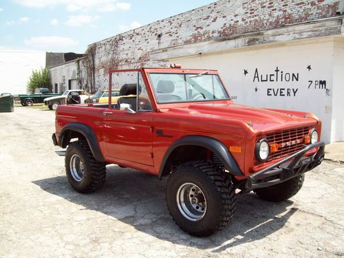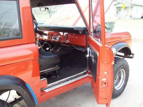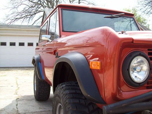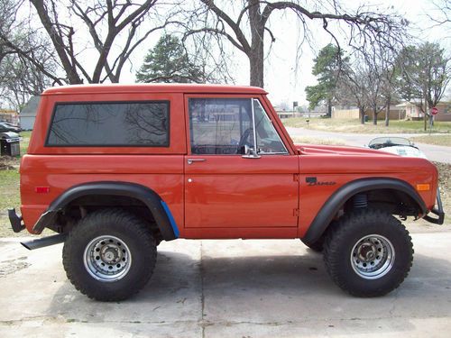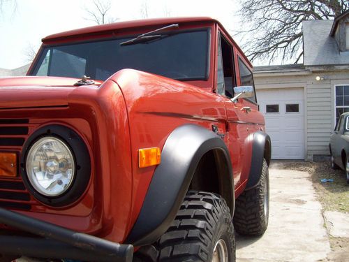 1972 Ford Bronco that is in very decent driving condition and looks pretty sharp overall.. This is a pretty nice truck overall, but it does have some basic flaws that would need to be addressed to be a show truck. The truck is very straight overall, but does have some scratches or blemishes here or there, but is still a very clean truck that gets some awsome attention where ever it goes.