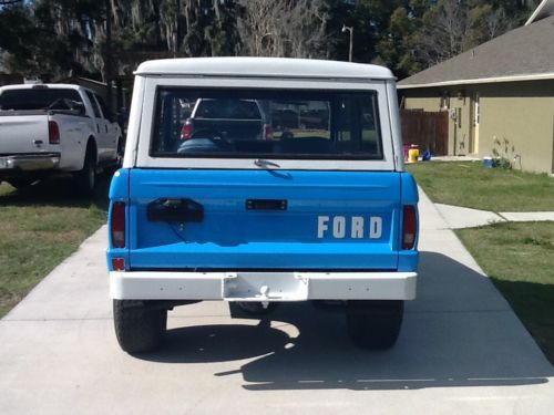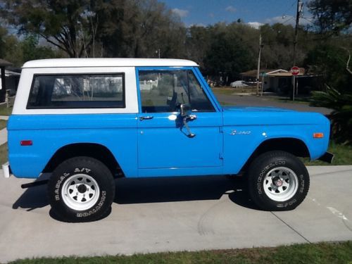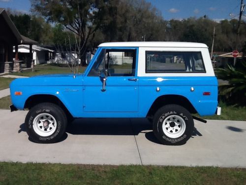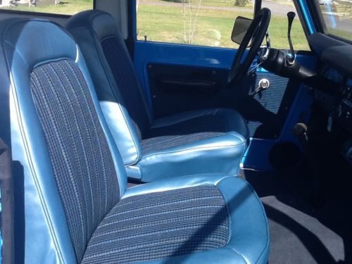 Thanks for looking at my auction...I have up for bid is my 1973 ford bronco 302 v8 in grabber blue with all new paint and new hounds tooth interior in blue and black with new blue carpet. This bronco is 98 % rust free only spots are at where floor pan turns to fire wall and is only about the size of 8" long by 2" wide easy fix