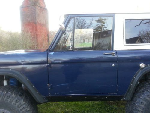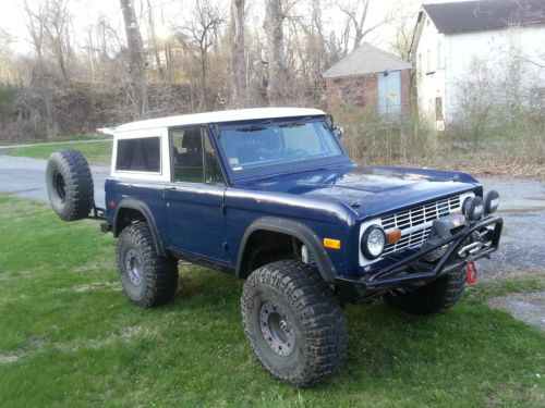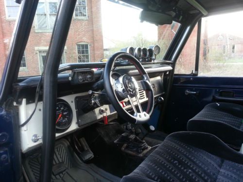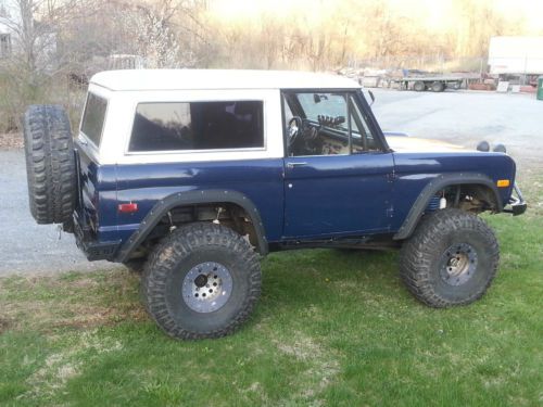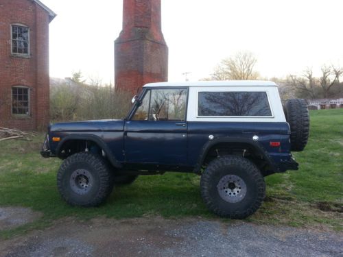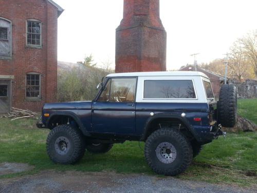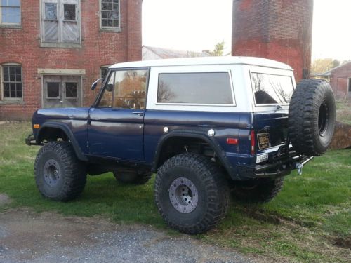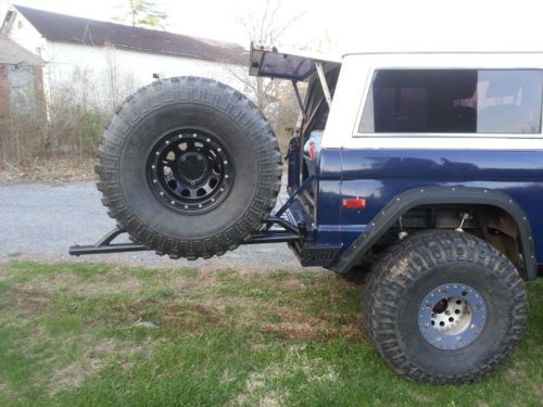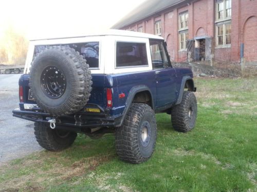 1974 Ford Bronco 351W with GT40 heads, aluminum intake, built 2bbl carb NV4500 5 speed transmission- center force clutch (crawl super low or drive down the highway at 70+ with 5th gear overdrive - imho the BEST manual transmission for an early bronco). ATLAS transfer case 456 gears Currie rear axle Chromoly front axles w/super joints Power Steering ARB air lockers- front and rear axles, ARB compressor Custom drive shafts 2 into 1 - three inch exhaust 38 Mickey Thompsons (different tires & wheels in pictures) On board air- converted York with under body storage tank (in addition to arb dual compressor) 9000lb Warn winch Rock Skies Custom long arms 5&1/2 inch rock crawler springs Dual shocks on each wheel with hoops 4 Wheel Power Disc Brakes Roll cage with cage mounted Aftermarket front and rear -fold&tumble seats with 3 point seat belts Aftermarket guages Later model steering column Tubular front and rear bumper w/tire carrier in the back and custom Ford logo on ends Decent paint but DOES have some trail scrapes, bumps and lumps The actual body has very, very little rust (California car). Fender flares. Note door frames were cut. The hardtop does have the rare chrome window trim and even harder to find drip rail chrome. Will swap the hard top for a new white softop if desired. Not perfect but a nice bronco with aggressive stance and a great look for the trails or the shopping mall. Over 40k spent making this an awesome trail and street rig. Would consider Toyota FJ Cruiser or Highlander in trade if agreed to prior to action close and ALL EBAY rules and policies are followed. |