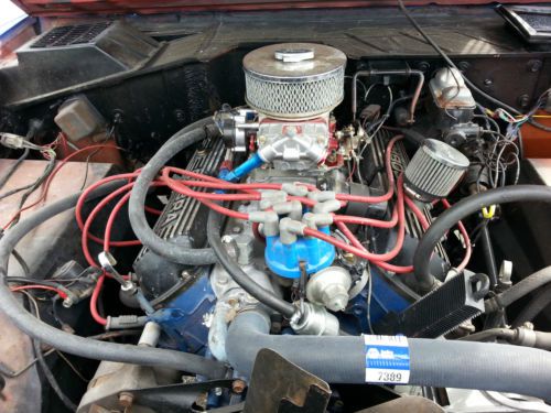 1974 Ford Bronco. 302 mustang cobra motor, 4 barrel carb, 3 speed trans in the floor, dual exhaust, 5 inch suspension lift, full roll cage, 33 x 12.5 a/t tires, 2 12" mtx sub-woofers with Jensen amp . Runs and drives. The speedometer and horn do not work. Should just have to hook them up.