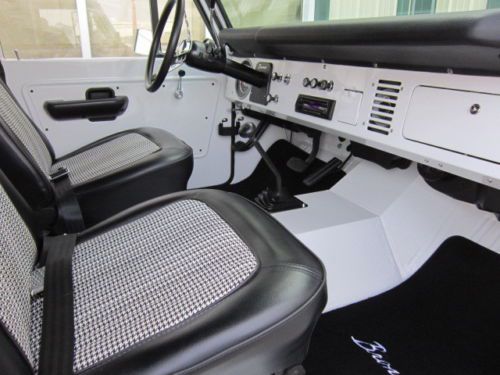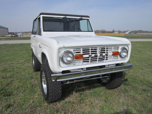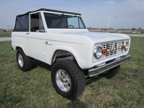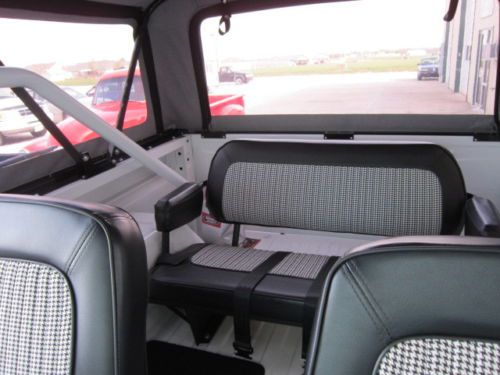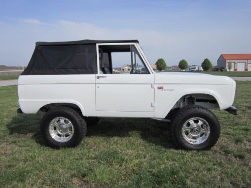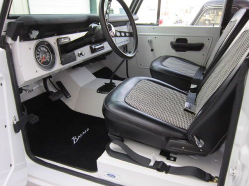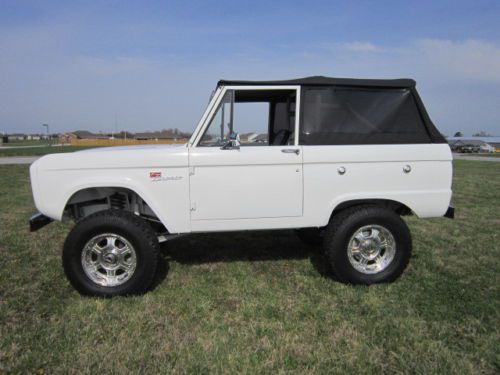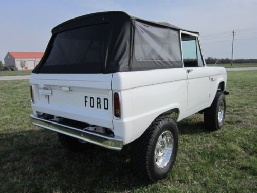 1974 Ford Bronco, 4X4 with less than 100 miles on a rotisserie restoration. This Bronco is like new from front to back, top to bottom. This is a very high quality restoration with great attention to detail. The engine, transmission, transfer case and both axles have all been gone through. The Bronco has a 3" suspension lift using only top notch parts. All new wiring harness, new fuel tanks, new fuel lines, new springs front and rear, new houndstooth style interior. Automatic transmission, power steering and power disc brakes. The 302 is all new with aluminum intake, headers, Holley carb, and much more. Flowmaster exhaust system. I am listing this Bronco for a good customer of mine so don't hesitate contact me with questions. I will do my best to answer or we can contact the owner. I do have the Bronco in my possession and will be glad to show it in person. Would consider trades up or down on a quality muscle car, Chevelle, Camaro, Mustang, 442, or a mid year corvette. Please call or text with any questions. 417-three two seven-five eight six nine. Please don't contact me to help sell or market this vehicle. I do reserve the right to cancel this auction at any time. I also want the transaction to be completed with in 7 days of auction end. |