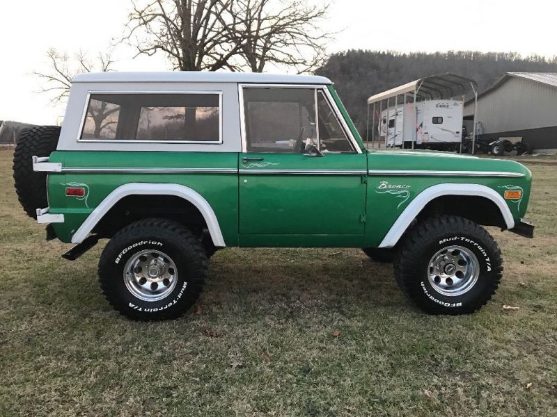 1975 Ford Bronco Ranger has 302 auto power steering and power disk brakes has 77 big bearing rear end great running motor with good shifting trans new 4" lift with new 33x12.50x15 BFG KM2s on 15x10 procomp wheels complete new black interior with rear panels and new headliner has kick panel sleeker kit with new CD player body is in very good condition with older paint job has painted on stripes and some chips here and there nice driver quality new bumper flairs and exhaust tips just spent 2000 on the motor had heads rebuilt new water pump top end bad fuel caused it to bend valve new fuels tank and sending unit all brakes been done also this is a nice old bronco eye catcher!