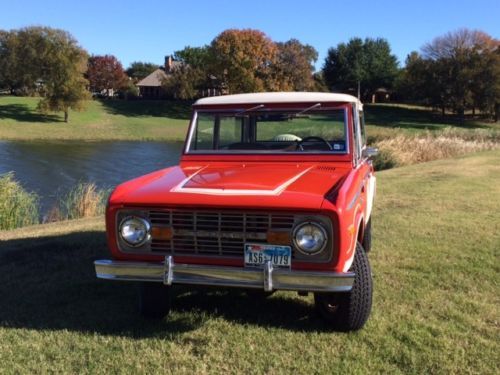 You are Bidding on a 1975 Ford Bronco Ranger XLT. I believe the odometer to be original miles, but do not know the previous history of the vehicle. Everything works on the vehicle and can be a daily driver. There is some typical body wear for a vehicle of this type and age. There is rust on the bottom of all doors, scratches in the paint and dents here and there. The interior is in great condition, The seats have know cracks or wear through. The carpet is in good shape. Vehicle comes with original keys. Sold AS IS.