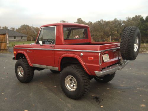 76 FORD BRONCO THIS IS ONE OF THE NICEST BRONCOS AROUND IT HAS 7300 MILES ON COMPLETE RESTORATION 4:56 GEARS DETROITLOCKER FRONT AND REAR,CUSTOM BUMPERS, IN CAB ROLL CAGE, BUMPERS AND CAGE POWDER COATED TOOL BOX AND HIGH LIFT JACK MOUNTED IN BED, STEEL HALF CAB, ALL TRIM IS IN EXCELLENT CONDITION, THERES TO MUCH TO LIST PLEASE ASK QUESTIONS.