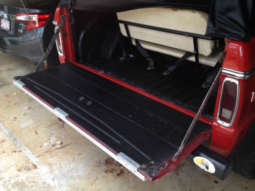 1976 Ford Bronco Sport restored in 2007 except for the engine compartment, inside door pulls and window channels. The current owner purchased the Bronco in 2002 from an individual in Birmingham, AL. New engine was put in the Bronco that year. Powertrain New 351 W Engine, approx., 11,588 miles ,Edlebrock performer intake with jet performance Q-Jet 4 barrel Carb , new radiator Magnaflow exhaust Stock 3 speed manual trans with 3 on the column shifting Stock Dana 20 “J type” transfer case Stock dana 44 front end Bushing kit installed by previous owner After market 24 gallon gas tank from BC Broncos with skid plate Stock disc front brakes Stock rear drum brakes Stock power steering Differential and fuel pump replaced 6/2013 Suspension 2.5 inch lift Coils spring front end with dual shock mounts Leaf spring rear end with dual shock mounts Eagle 589 Aluminum wheels 33” Super Swamer TSL’s Body 2007 Restoration Rust removed throughout body and patched with sheet metal. New floor pan in driver and passenger footwell, new front fender, new taillight cap, new rocker panel Stock aux. gas tank removed, filler cap shaved Stock radio location shaved New urethane fender flares from Wildhores 4x4 Stock Spare tire carrier shaved New cowl induction fiberglass hood with hood pins Best Top Supertop soft top with tinted windows 4 point roll bar Body primed and painted GM victory red Interior spray with bedliner Undercarriage undercoated New chrome emblems including 351 emblems on cowl Interior Corbeau racing seats 3 point seat belt upgrade stock rear seat Tuffy security console with stereo mount Diamond plate door panels Electrical Painless wiring harness Dakota digital dash Pioneer CD player with aux. imput Besttop sound bar Old parts we still have Stock gauge cluster Hard top with some surface rust Spare tire carrier A deposit of $1,000 is required in 48 hours of the auction close with full payment due in 3 business days. Buyer is responsible for vehicle pickup or shipment. |