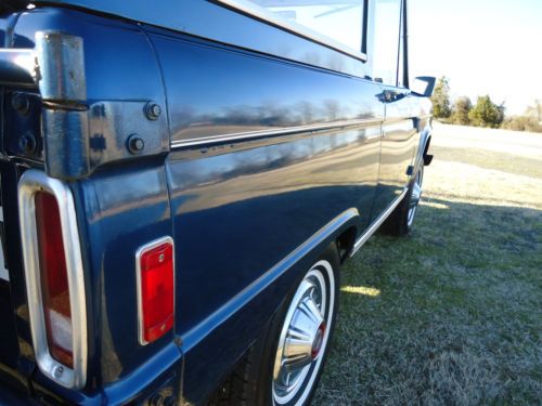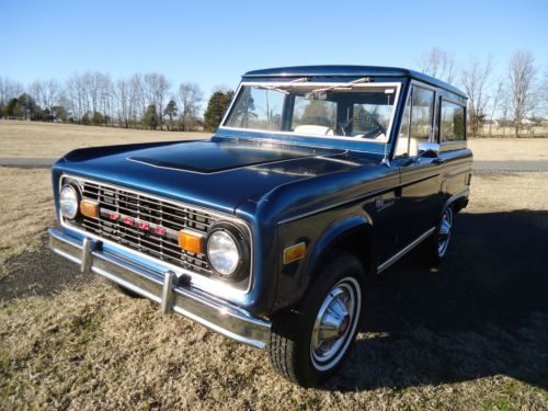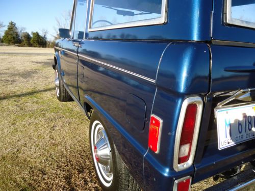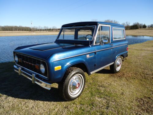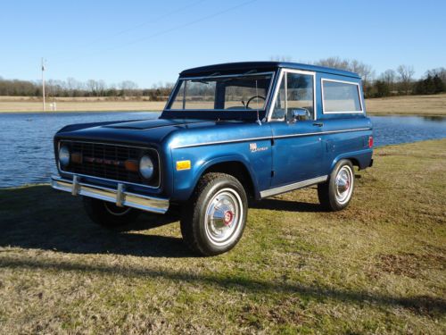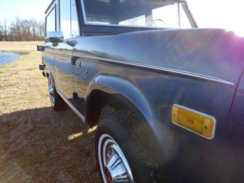 1977 ford bronco "sport" last year of the best broncos this bronco has all the good stuff 302 motor C-4 automatic transmission power disk brakes and power steering everything works has a good heater fuel gauge works runs down the road like it should been driving this rig a few days now starts right up very easy to drive does not dart or sway back and forth straight down the road has factory sway bar up front! this rig is not rusty dont show any in normal places all door jams are clean under hood on inner fenders are clean floor pans are solid only rust or looks like rust is rear quarter seams surface only not rusty really normal has new carpet up front with rear cargo rubber floor mat has nice original seats pass side seat has one small tear the rest are very good condition has factory rear spare tire with cable the engine compartment is clean has new power brake booster and master cylinder with new hood prop kit tires are new with painted steel wheels and factory hub caps!the body is nice condition has been repainted several years ago has some scratches here and there no major dents anywhere this is a nice driver that can be driven anywhere!there hard to find in this condition factory uncut rear quarters.with a nice paint job this rig would be worth thousands! or just drive like it is.it still turns heads everywhere it goes!look at all the pictures if you have any questions please ask threw email or you can call me at (501)-940-1213 please dont ask for the reserve!not fair to bidders it has a fair reserve.i want a 500.00 non refundable deposit 24 hours after auction and balance 7 days NO exceptions! also i reserve the right to end auction at anytime! also if you need or want it transported i have a friend that will do it. or come and inspect for your self and drive it home! thanks!