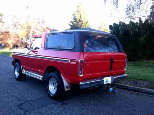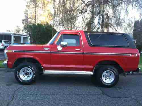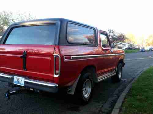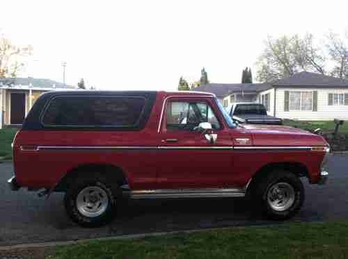 1979 FORD BRONCO REALLY NICE RUNS AND DRIVES GREAT HAS A 351 ENGINE WITH AN AUTOMATIC TRANSMISSION PAINT AND BODY IS EXTREMELY NICE NO BODY DAMAGE AND RUST FREE HAS 4X4 WORKS GREAT WITH LOCKING HUBS INTERROIR IS VERY CLEAN NO RIPS OR TEARS EXPEPT IN THE DRIVER SEAT THERE IS ONE SMALL RIP IN THE SEAM OTHER THEN THAT ITS NICE TIRES ARE ONLY FEW MONTHS MORE THEN 80% TREAD ON THEM IF YOUR LOOKING FOR A NICE BRONCO TO CRUISE OR 4X4 THIS IS THE PERFECT RIG FOR MORE INFO PLEASE CALL (509)949-9847 THANK YOU HAPPY BIDDING