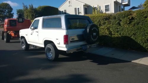 This 1985 Bronco is very clean! PASSED SMOG! A/C! Wireless key entry! 5.8L 351 Windsor with C6 Transmission with 38k miles! Original Engine and Transmission New and Rebuilt! The 2nd Owner had it for 28 years! New Chrome rims and new BF Goodrich tires! White on Blue! Heavy duty brass radiator! Perfect Summer Truck! $4950.