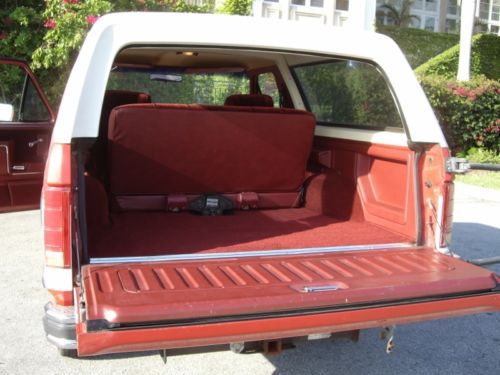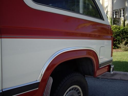 Original Owner Body: red & white; excellent condition, no damage ever Engine: 302 engine w/recent rebuild; Edelbrock aluminum heads Competition Cams roller tip rockers Summit intake and carb Camshaft for improved torque/economy - 9:1 CR – regular gas Trans: AOD transmission w/new lock-up converter (better MPG); seals, pump gasket; Lokar system for TV lever; new transfer case seals. Interior: red; original carpeting; captain chair seats always covered; folding rear seat (easily removable); all excellent condition; non-smoker Other: Front and rear traction-loc axles; trailer towing pkg. w/extra cooling; Reese #35159 V-5 Tow Bar: 10,000 lb. weight distributing; 5,000 lb. weight carrying Good A/C