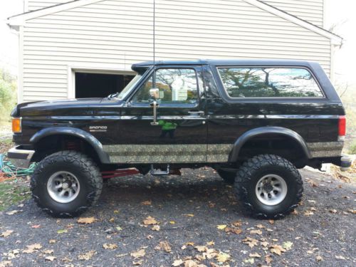 Nice running full sized bronco xlt. The good: New alternator, rebuilt transmission, new ignition switch. Interior is nice. Dashboard has no cracks. New radio with am/fm/cd/mp3 and hands free talk for your cell phone. New battery. Cruise control does work. Tires still have a lot of tread on them. Runs like a top. Bronco has a professionally installed suspension lift and body lift kit and sits on 35 inch Nitto Terra Grapplers. I haven't measured but it's about 10 inches of total lift. It's got the 351ci motor. The truck is a blast to drive. The bad: The drivers side floor board is shot and needs to be replaced. Gas gauge doesn't work. The paint is ok but not great. It's got a few dings here and there. The rear window does not work. The power window switch on the driver's side does not work the passenger side window. The a/c does not work but the heat and defrost do. There's no rear speakers. The exhaust leaks and probably won't pass inspection. The current inspection stickers expired last year. To get it inspected, the floor boards and the exhaust need to be fixed.