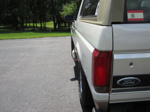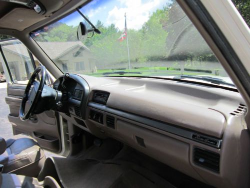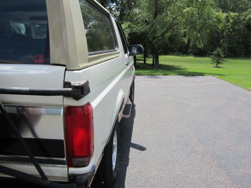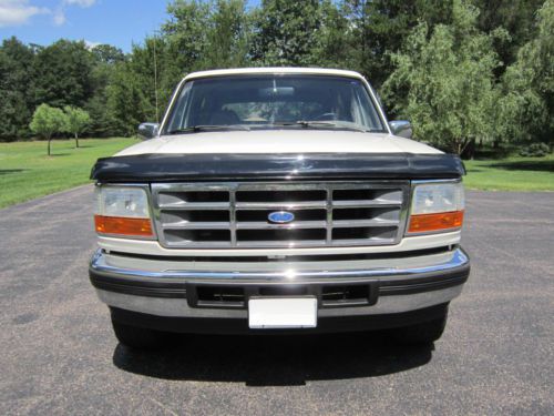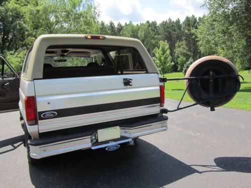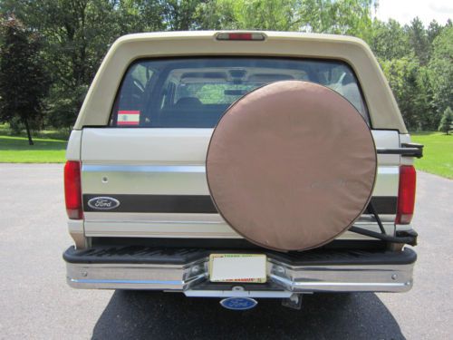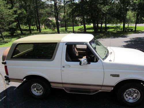 1995 Ford Bronco Eddie Bauer 4X4 Edition. We have maintained and keep it in a warm garage thur winter. We bought it used. Just put the key in and your ready to go.. Drives very well. It is a solid, handsome truck. All factory, except CD player (Kenwood) New Lock out hubs, power door locks, ignition switch, Battery, steering box. Truck is rust free with New Undercoating, It came from the West Coast. Any extra info please feel free to write us.