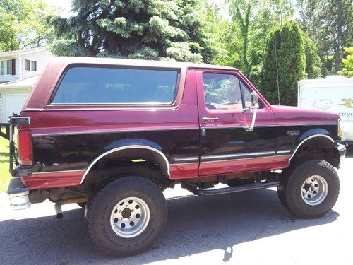 Selling my 1995 Ford Bronco XLT, I've owned it 2 years and it runs great. It has high miles, don't know if the engine or transmission has ever been replaced, as I or prior owner didn't have knowledge of it being swapped or rebuilt. Correct motor is in vehicle. My wife drove the vehicle from Las Vegas to Rochester, NY in April of this year, as we were moving back East, and had absolutely no problems with it. Prior to driving it across country I had my mechanic replace many parts in the front end including bushings, tie rods, brake pads, ect. to ensure safe travel. Last September I put on four new Falken 35" tires which have about 90% of their tread, only driven about 5,000 miles since they were put on (2,500 highway driving across the country), new slotted rotors a year ago, new step up bars, and upper/lower radiator hoses a year ago. Vehicle has a 7" lift and A/C blows cold. Inside tailgate and bed are rhino lined. Everything works as it should with the exception of cruise control (would more than likely work if the steering wheel was replace, as buttons for this option are missing). There is no stereo in the vehicle, all connections and deck cut out are there as you can see in the pictures. The rear seat is out of another Bronco prior to me owning it and is tan in color, and in excellent condition, overall interior is in good condition. Vehicle has 4x4 and Low Range, which is push button controlled, the vehicle also has locking hubs if you prefer that option. I have used the 4x4 and Low Range on several occasions going up to my cousins ranch in Arizona (6,000 ft elevation used it in rain and snow), works great. This vehicle is solid, No rust, Las Vegas Vehicle. If you have any questions or would like to view the vehicle in person, please contact me. $500 deposit within 24 hours via PAYPAL, balance in cash or cashiers check. Vehicle will not be released until cashiers check clears my bank. Shipping is the responsibility of the buyer. I will help any way I can. You can get shipping quotes on-line through many vehicle shippers in the US. No Warranty is expressed or implied. If you have less than 10 feedbacks, you must contact me prior to bidding or I will remove your bid. Good luck and Happy bidding!!!
