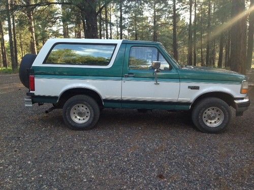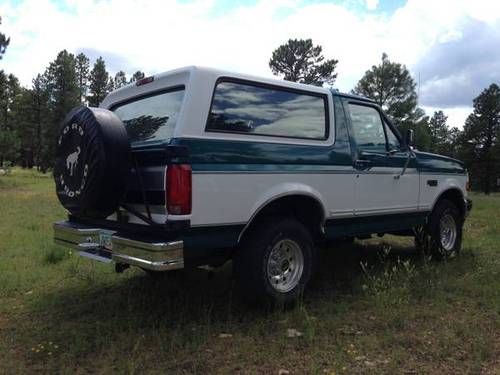 1996 Ford Bronco XLT. 5.8 liter 351 Windsor V8. E40D Automatic Transmission. Push Button 4x4. Warn Premium Locking Hubs. Driver Side Airbag. Power Windows, ice cold A/C, Pioneer Stereo and Premium Speakers. Clear title. Clean Car Fax. LAST YEAR for the Bronco. PERFECT all original paint. Dealer Maintained. This Bronco has never been "romped" or off roaded, and is all stock.