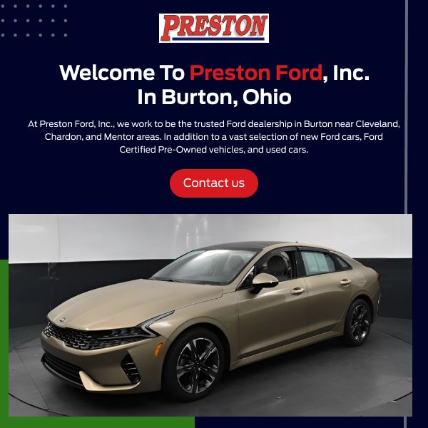 Preston Ford is your go-to Ford dealership in Burton, OH, offering a wide selection of vehicles. With us, you can find the latest models of new Ford for sale, ensuring you have access to the most up-to-date options on the market. If you're in the market for a reliable pre-owned vehicle, we also have a diverse inventory of used Ford for sale. Additionally, our dealership provides convenient access to Ford parts online, making it easy for you to find and purchase genuine parts for your vehicle maintenance needs.