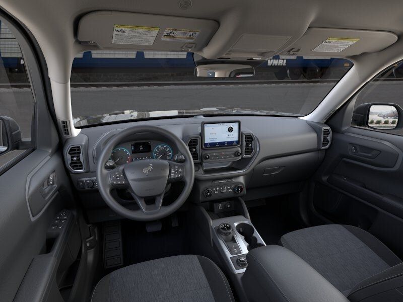 How would you like cruising away in this terrific 2024 Ford Bronco Sport Big Bend in Shadow Black, beautifully equipped with Equipment Group 200A, 3.80 Axle Ratio, 4-Wheel Disc Brakes, 6 Speakers, ABS brakes, Air Conditioning, Alloy wheels, AM/FM radio: SiriusXM, AM/FM Stereo, Auto High-beam Headlights, Automatic temperature control, Brake assist, Compass, Delay-off headlights, Driver door bin, Driver vanity mirror, Dual front impact airbags, Dual front side impact airbags, Electronic Stability Control, Emergency communication system: SYNC 3 911 Assist, Four wheel independent suspension, Front anti-roll bar, Front Bucket Seats, Front Center Armrest, Front reading lights, Fully automatic headlights, Heated door mirrors, Illuminated entry, Knee airbag, Low tire pressure warning, Occupant sensing airbag, Outside temperature display, Overhead airbag, Overhead console, Panic alarm, Passenger door bin, Passenger vanity mirror, Power door mirrors, Power steering, Power windows, Radio data system, Rear anti-roll bar, Rear reading lights, Rear seat center armrest, Rear window defroster, Rear window wiper, Remote keyless entry, Roof rack: rails only, Security system, SiriusXM, Speed control, Speed-sensing steering, Speed-Sensitive Wipers, Split folding rear seat, Steering wheel mounted audio controls, SYNC 3 Communications & Entertainment System, Tachometer, Telescoping steering wheel, Tilt steering wheel, Traction control, Trip computer, Unique Cloth Front Bucket Seats, Variably intermittent wipers, and Wheels: 17 Carbonized Gray-Painted Aluminum! This Ford Bronco Sport has many features and is well equipped including.
